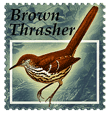 On April 6,1935, the governor of Georgia proclaimed the Brown Thrasher as the State Bird. In 1970, at the request of the state garden clubs, the state legislature confirmed the choice, enacting legislature that made the Brown Thrasher the official State Bird. The Brown Thrasher has a white breast streaked in brown, white wing bars, and a rich brown color on top. It's almost a foot long, from tip to tail, with a long, curved bill and very long tail. The Brown Thrasher migrates North in the summer and spends winters in the Southern states.